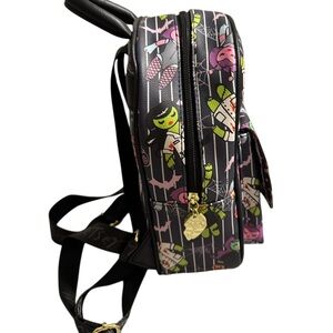 Charming backpack with playful Halloween figures. Features a vibrant design on a dark backdrop. Perfect for adding fun to any outfit.