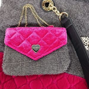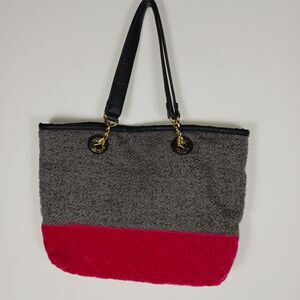 Betsey Johnson Bag Trendy Shopper Pink Velvet Gray Tweed