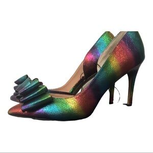 Betsey Johnson Bary metallic iridescent rainbow d’orsay stiletto bow heels sz7.5