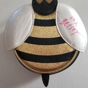Betsey Johnson Signature Bee Zipper Pouch Cosmetic Bag Change Purse EUC Gold Tone Accents