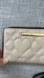 Charming wallet with quilted heart pattern. Features a sleek design and gold-tone accents.