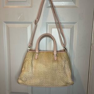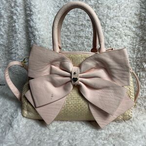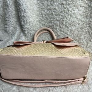 Betsey Johnson Beige Straw Satchel/Shoulder bag .large faux leather bow accent.