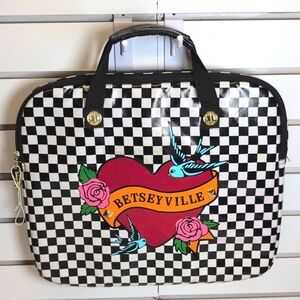 Betsey Johnson Betseyville Laptop Case Quilted Black White Checkered Sz 13x14 In