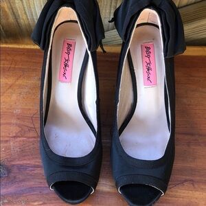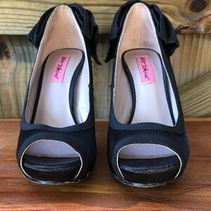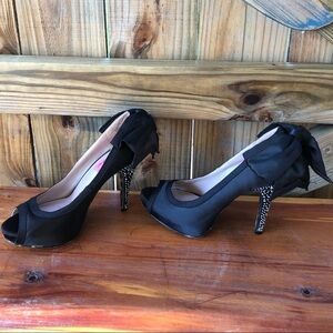 Betsey Johnson Black Bow Back Peep Toe Crystal Heel Pumps Casey Y-R Size 6.5
