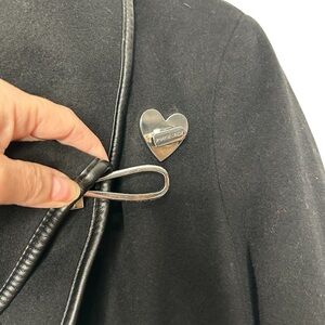 Betsey Johnson Black Brushed Wool Fold-Over Neck Drape Coat Asymmetric Hem Sz 4