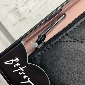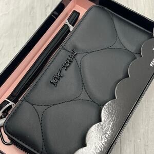 Betsey Johnson Black Bubble Heart Faux Leather Wallet Removable Wristlet
