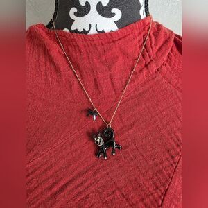 Betsey Johnson Black Cat Pendant Antique Gold Tone Necklace Rhinestone Rare 19'