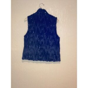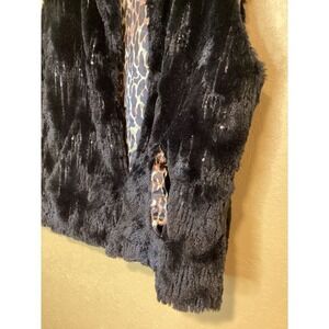 Betsey Johnson Black Faux Fur Vest with satin Leopard Print Lining Size Medium