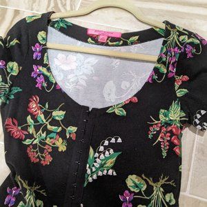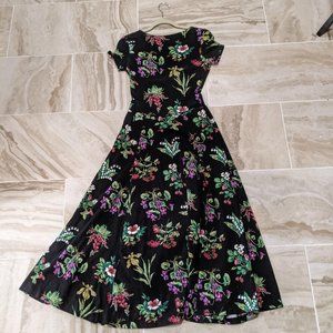 Betsey Johnson Black Floral Maxi Short Sleeve Dress for Urban Outfitters XS