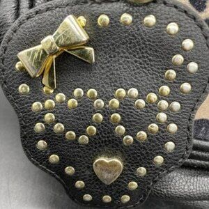 Betsey Johnson Black Leopard Mini Backpack crossbody w/ Skull Studded Bag Charm