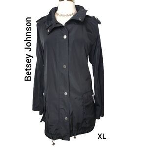Betsey Johnson Black Lightweight Jacket Full Zip Snap Button Closure Coat XL