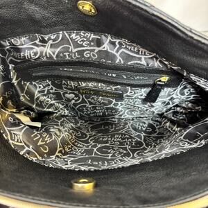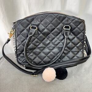 Betsey Johnson Black & Pink Quilted Satchel Gold Tone Accents Pom Pom Bag Charm