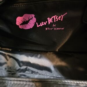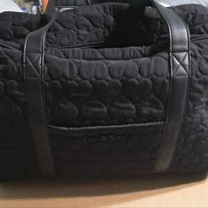 Elegant Betsey Johnson black quilted bag with heart design. Ideal for weekend getaways. Used twice one small scratch on back, but excellent condition.