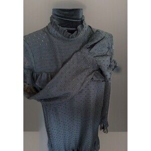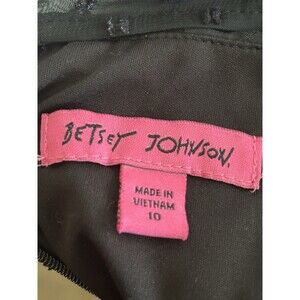 Betsey Johnson Black Rainbow Clip Dot Ruffled Dress High Neck Sheer Size 10 Midi
