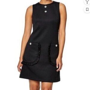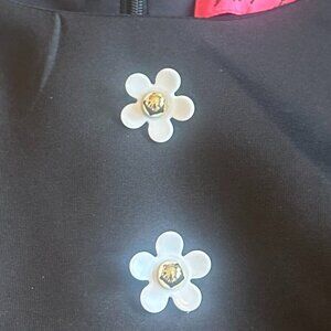 Betsey Johnson Black Shift Dress Daisy Buttons Mod Shift Fit Stretch Size 4