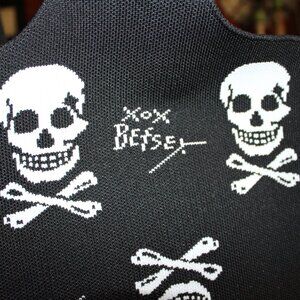 Stylish tote with skull and crossbones design. Bold and edgy look. Perfect for everyday use.