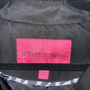Betsey Johnson Black Trench Coat – M – Navy Chic with Lace-Up Back!