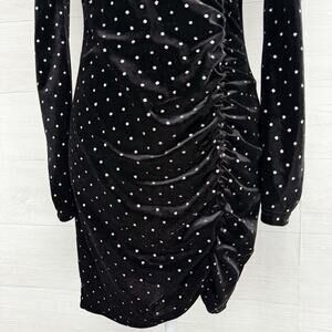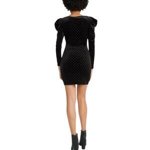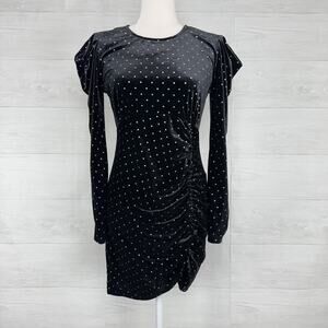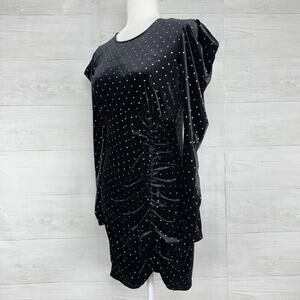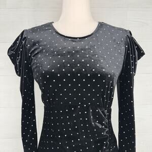 Betsey Johnson Black Velvet Dress M Power Sleeve Metallic Silver Dot Whimsigoth