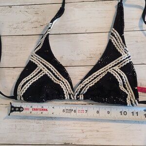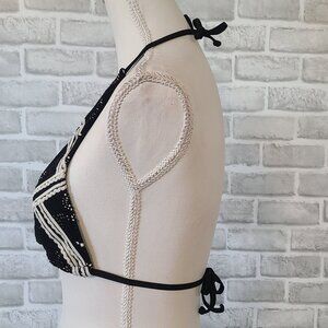 Betsey Johnson Black White Lace Crochet String Bikini Top Small Beach Swim