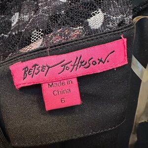 Betsey Johnson Black & White Polka Dot Lace Overlay Rock Glam Dress Size 6 Small