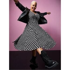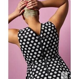 Betsey Johnson Black & White Polka Dot Poplin Fit & Flare Dress 2 18-20