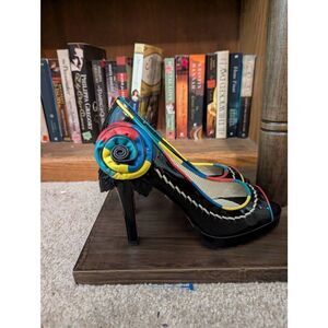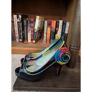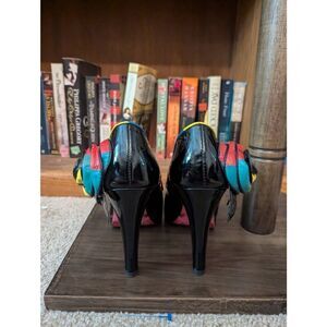 Betsey Johnson Black Womens 8 Open Peep Toe High Heels Shoes Multicolor Floral