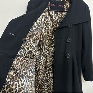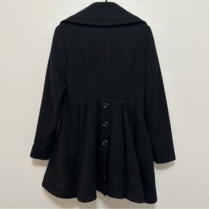 Betsey Johnson Black Wool Pleated Double Breasted Pea Coat
