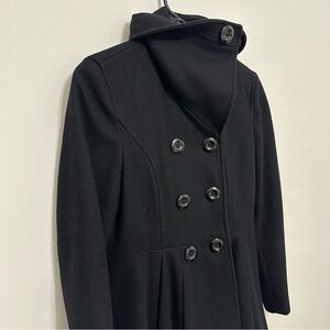 Betsey Johnson Black Wool Pleated Double Breasted Pea Coat Size 2 academia