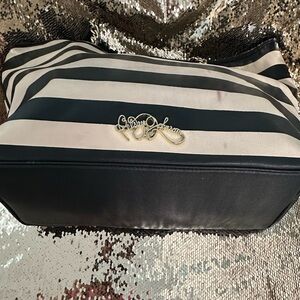 Betsey Johnson Black and Cream Striped Satchel with Red Bow