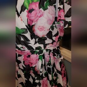 Betsey Johnson Black and Pink Floral Faux Wrap Maxi Dress