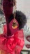 Stylish keychain featuring a black pom-pom and pink heart charm. Gold accents add a touch of elegance.