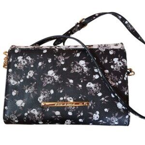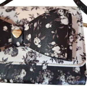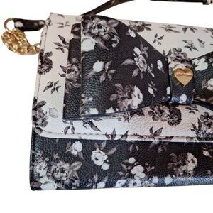 Betsey Johnson Black and White Floral Bow Roses Crossbody Purse Chain Strap