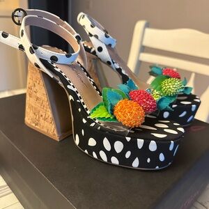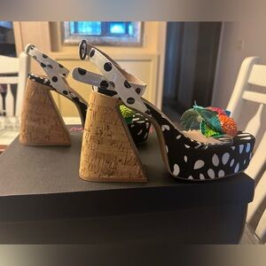 Betsey Johnson Black and White Platform Shoes with Polka Dots