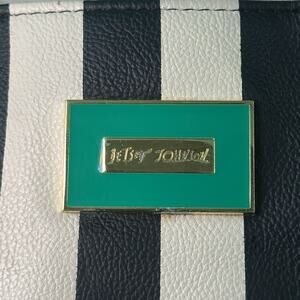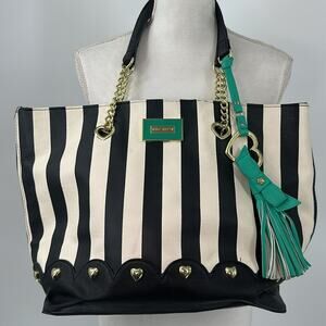Betsey Johnson Black and White Striped Tote with Gold Accents