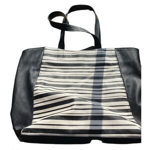 Betsey Johnson Black and white striped tote floral satin lining