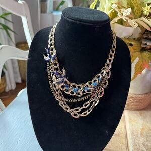 Betsey Johnson Blue Bird Multi Chain Chainlink Necklace