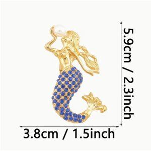 Betsey Johnson Blue Crystal Mermaid Brooch Gold Tone
