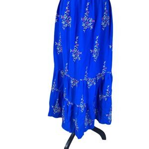 Betsey Johnson Blue Embroidered Maxi Dress Spaghetti Strap Boho Y2K Festival Med