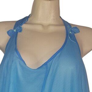 Betsey Johnson Blue & Green Sheer Ruffled Nightgown Halter Style M