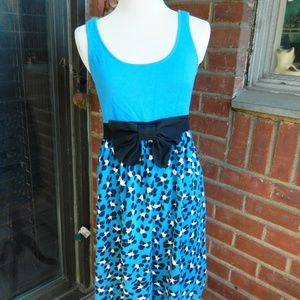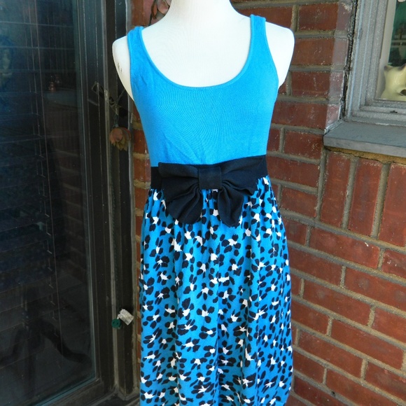 Betsey Johnson Blue Leopard Bow Sweater Dress L