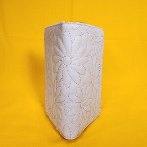 * Baby Blue Faux Leather Exterior with Quilted Flower Accents
