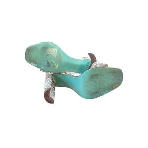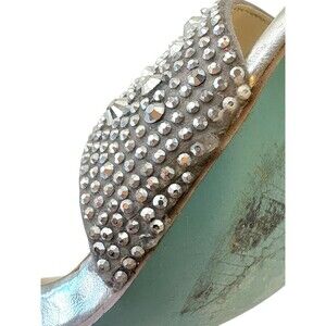 Betsey Johnson Blue SB-Rina Silver Rhinestone Block Heel Sandals Size 6