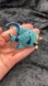 Deep turquoise striped fish accented with light blue glass stones. 24” golden chain included. This pretty girl does have one lifted stone (see photos), it is securely in the lifted position and doesn’t seem to be going anywhere. Pricing at $12 due to this, but still beautiful and barely noticeable.