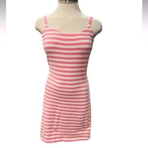Betsey Johnson Blue Striped Tail Feather Cotton Lycra Dress Pink/White Size M
