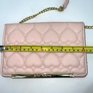 Betsey Johnson Blush Pink Quilted Hearts Small Crossbody Wallet Purse **READ**
