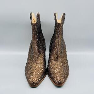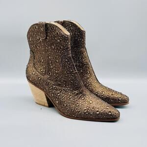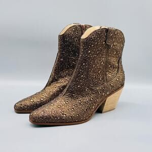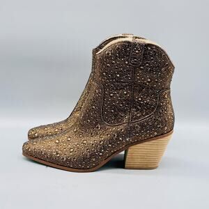 Betsey Johnson Boots Womens 9 Gold Brown Western Ankle Zip Sparkling Rhinestone