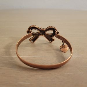 Excellent condition, minimal signs of wear. Antiqued bronze/gold bangle with bow accent embellished with rhinestones.