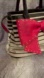 NWT Betsey Johnson black and white striped bucket bag featuring a prominent fuchsia pink, studded bow detail