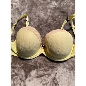 Betsey Johnson Bra 32DD (32E) Pale Yellow Underwire Lightly Padded