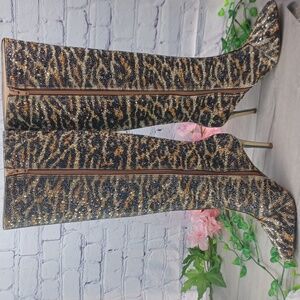 Unleash your wild side with the BREA LEOPARD tall shaft boot! This fierce footwear features a pointed toe and sparkling leopard rhinestones, adding some extra flair to your wardrobe. Perfect for making a statement and standing out from the crowd. (Don't be afraid to show off your inner beast!)